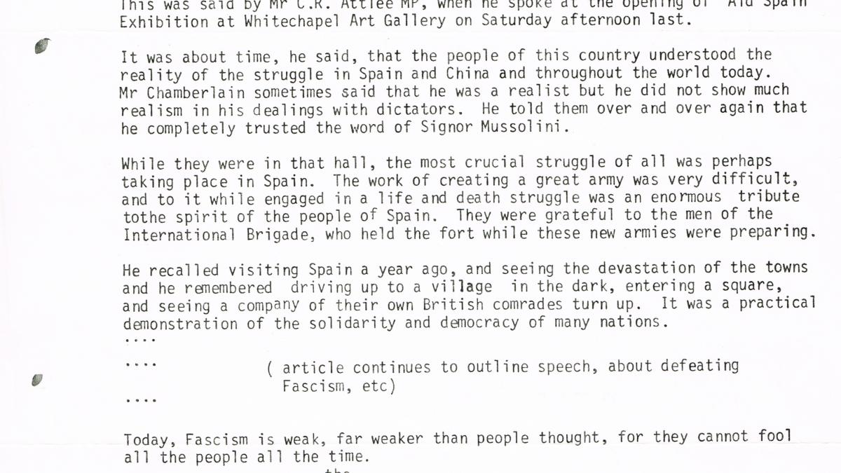 Transcribed press cuttings featured in the London press on 7 January 1939.