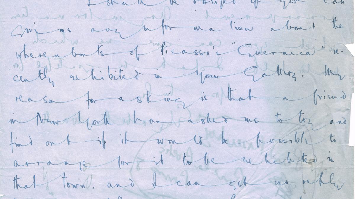 Elizabeth Watt writes to J.N. Duddington, director of the Whitechapel Art Gallery, on the possibility of taking the exhibition Guernica pictures by Picasso to Leeds.