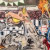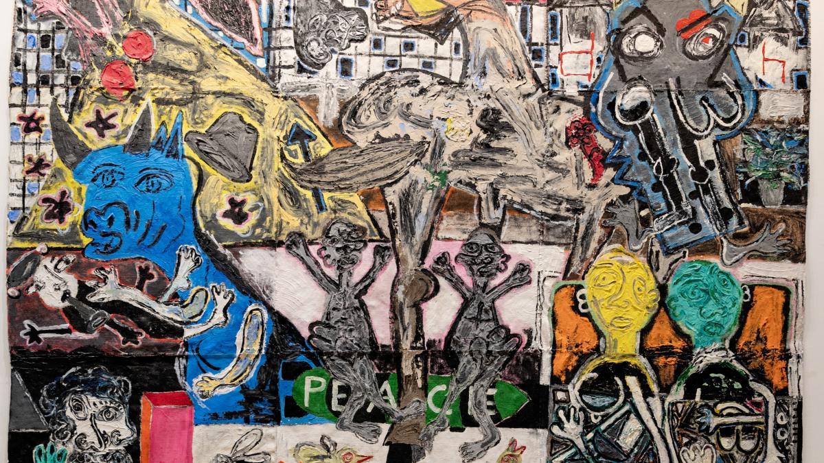 This work by Héctor López, packed with textures, furrows and matter, “speaks of the pain following the bombing of the town of Guernica, the anguish of its people and the resemblance with recent wars”.
