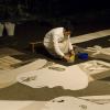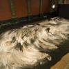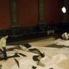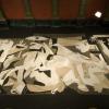 I began the project by creating the majority of a sand painting version of Guernica before the exhibition opened. I then created the remainder of the piece within one day, midway through the exhibition. This performance started at sunrise and concluded at sunset. Throughout this day, one person at a time was allowed to walk (ideally barefoot) on the sand painting, effacing it at the same time I was creating it. Visitors were allowed to view this process of simultaneous creation and destruction from the vantage point of a small island constructed above the sand painting. At sunset on that day, four performers sweep the sand toward the middle of the installation, and the project is then left in this condition until the exhibition concludes.