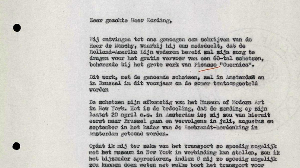 Hans Ludwig Cohn Jaffé, deputy director of the Stedelijk Museum writes to the company Holland-Amerika Lijn regarding transport issues.