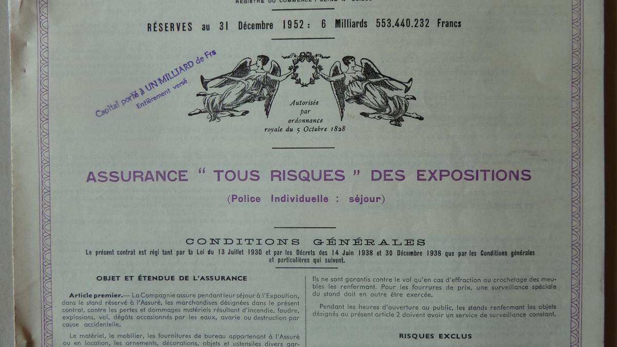 The insurance contract and list of prices for the works insured and sent to the Musée des Arts Décoratifs, Paris