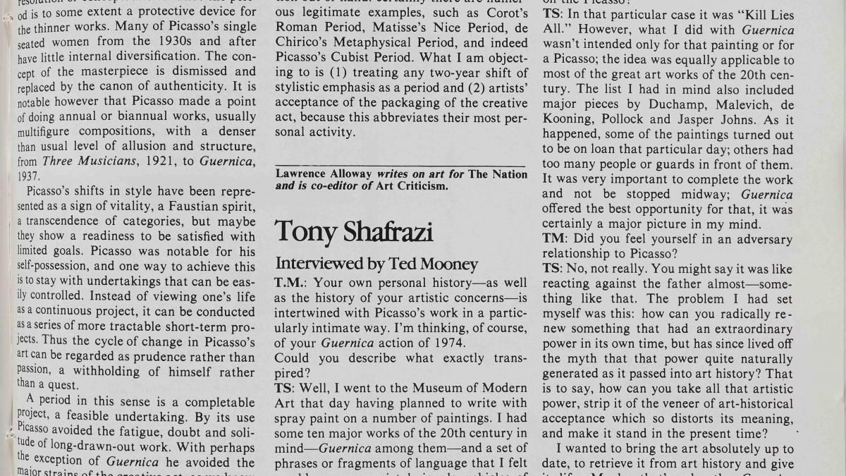 Interview Tony Shafrazi by Ted Mooney, Art In America magazine