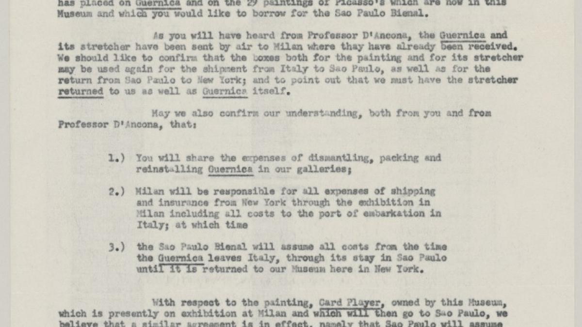 Letitia T. Howe writes to Maurice Jardot with issues related to Milan, São Paulo and Paris, above all regarding details of loans and costs.