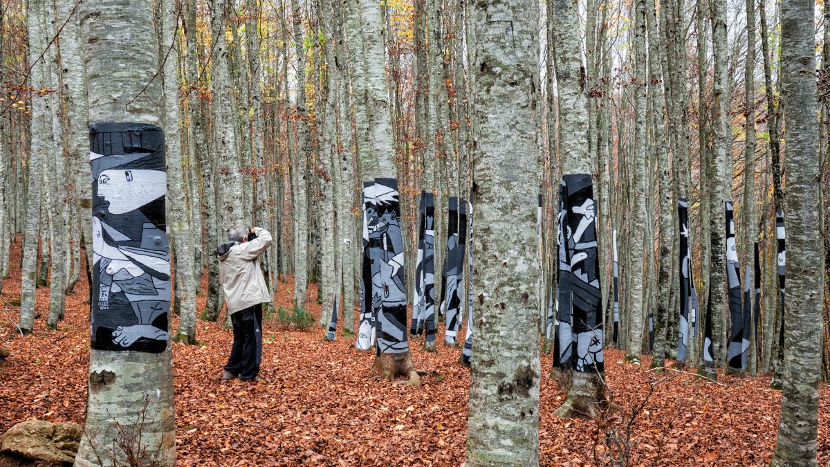 A collective protest work against the mining of mineral resources from the Zilbeti beech forest (Navarra).
