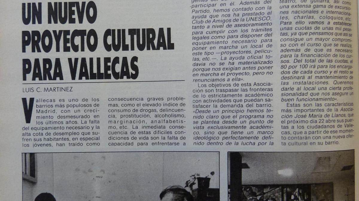 "Un nuevo proyecto cultural para Vallecas", Mundo Obrero, 20 November, p.22.