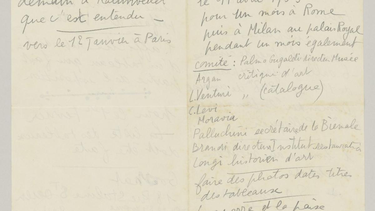 Pablo Picasso writes notes on different matters, including the Rome and Milan exhibitions.
