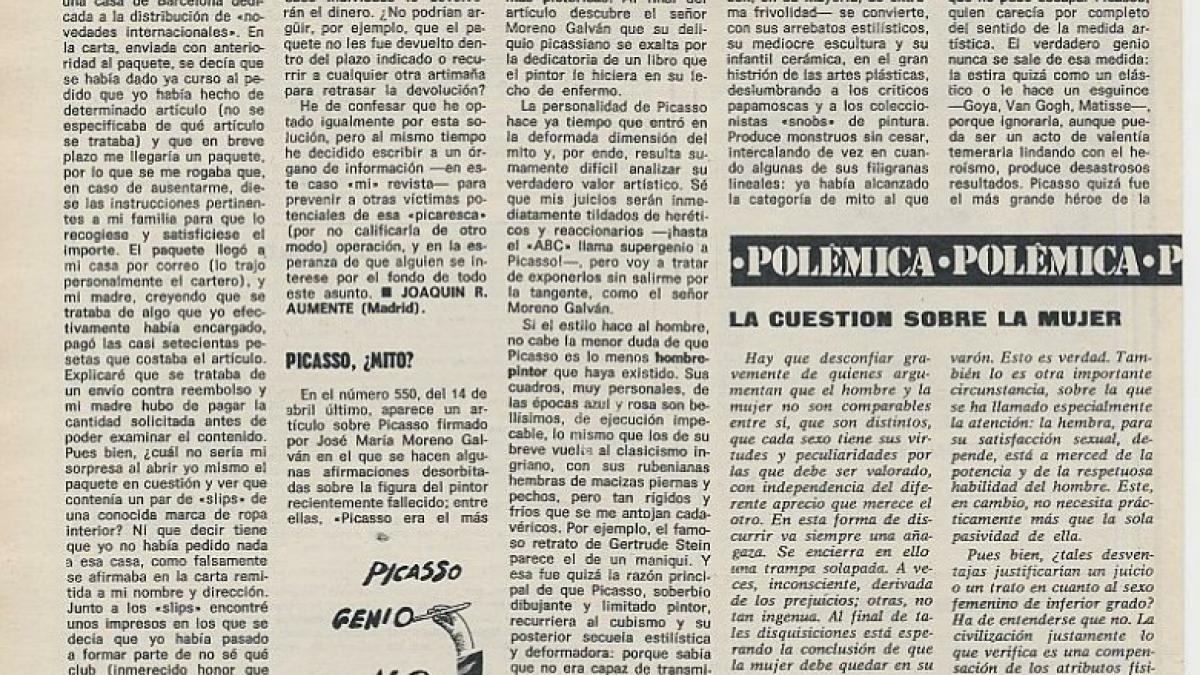 Juan Rodríguez Ozores, "Picasso, ¿mito?", Triunfo, 12 May 1973, p. 554.