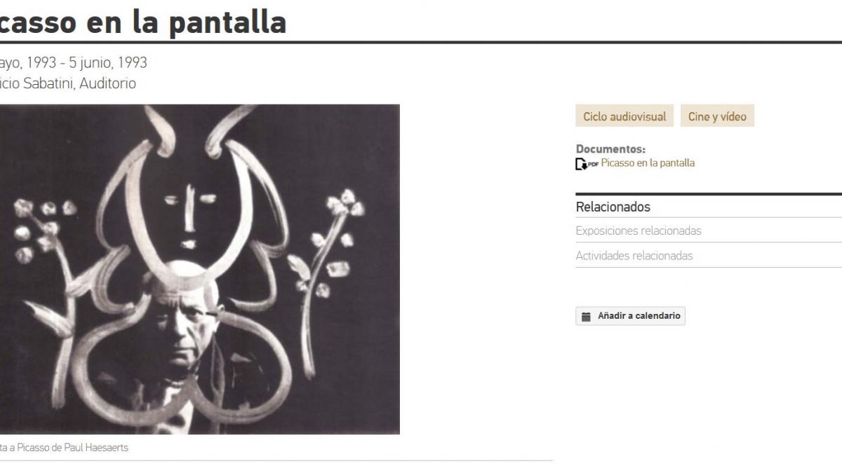 At the beginning of the 1970s, Carlos Fernández Cuenca, the former director and president of the Spanish Film Archive, wrote Picasso, en el cine también, a well-documented volume that established the first filmography of Picasso on screen. Fernández Cuenca’s work served as the starting point for the programme Picasso à l’écran at the 3rd International Biennial of Films on Art (1992), which is now being presented by the Museo Nacional Centro de Arte Reina Sofía. The fortuitous discovery of Esencia de Verbena (1930) by Ernesto Giménez Caballero (Madrid, 1899-1988), the first known short film to look at Picasso’s work (along with works by Francisco de Goya and Maruja Mallo), suddenly confirmed the importance of and interest in reviving the filmography established by Fernández Cuenca, which this exhibition is designed to reflect.