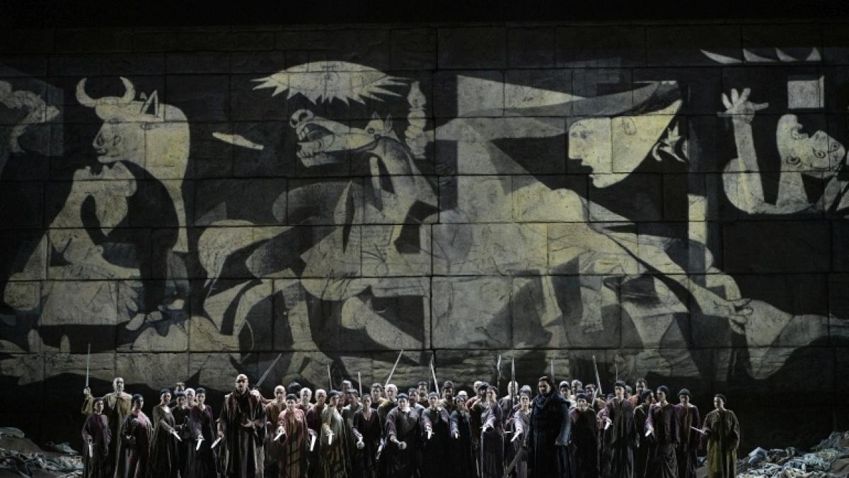 A projection of Guernica during the ‘I lombardi alla prima crociata’ opera