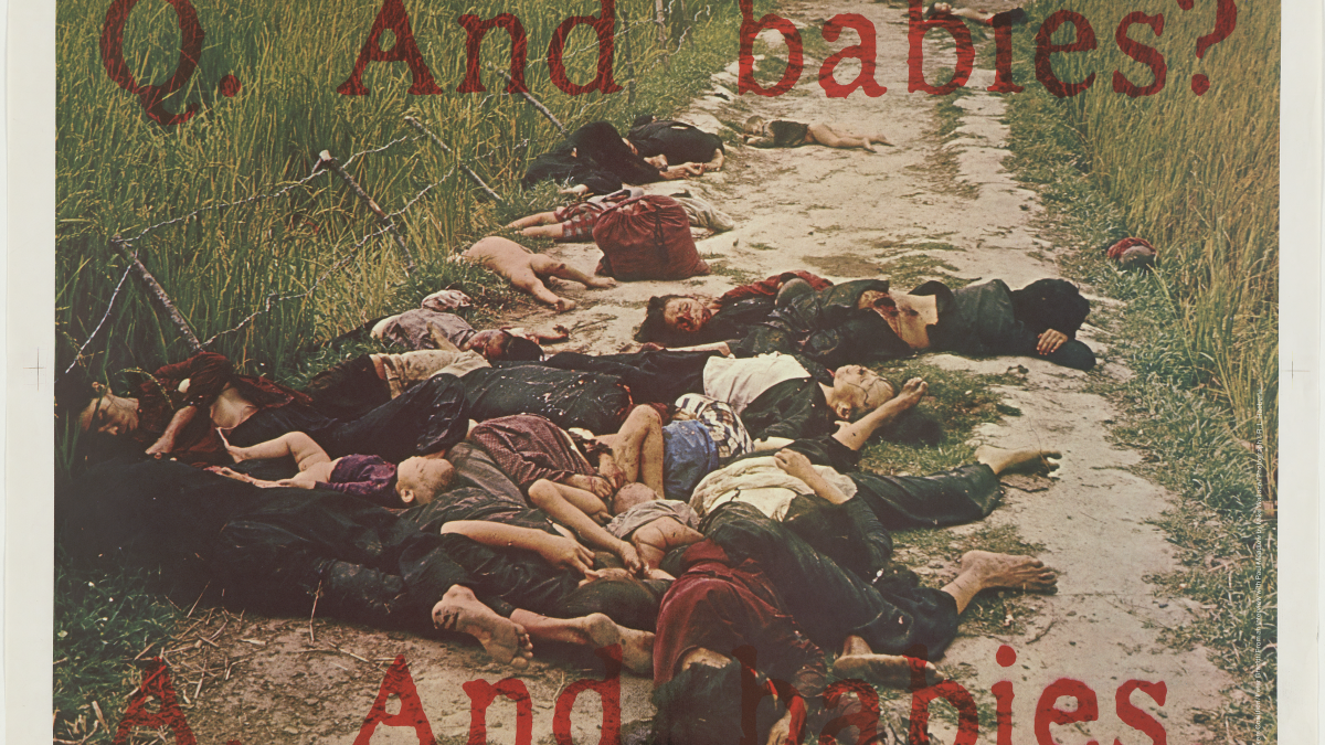 Poster against the Vietnam War, created by the Art Workers' Coalition, featuring an image of the My Lai Massacre.
