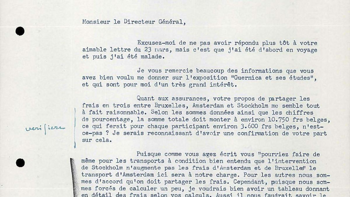 Robert Giron, director of the Palais des Beaux-Arts, Brussels, sends Willem Sandberg, director of the Stedelijk Museum, the letter from Otte Sköld, director of the Nationalmuseum, Stockholm, in which he accepts the quote for the delivery of the exhibition and other aspects related to the reproduction and catalogues.
