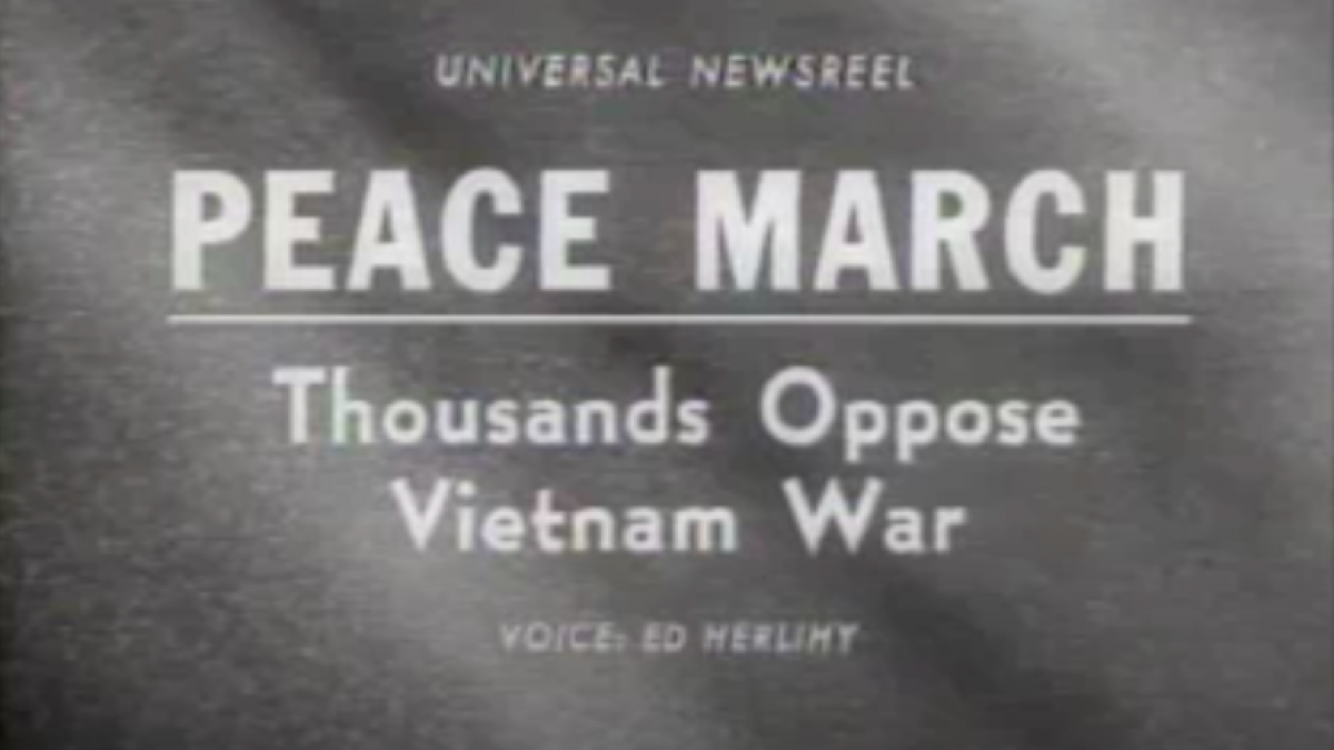 Typical of US media reports of anti-Vietnam War protests, the newsreel on the San Francisco demonstration includes a menacing statement: “President [Lyndon B.] Johnson let it be known that the FBI is closely watching all anti-war activity”.