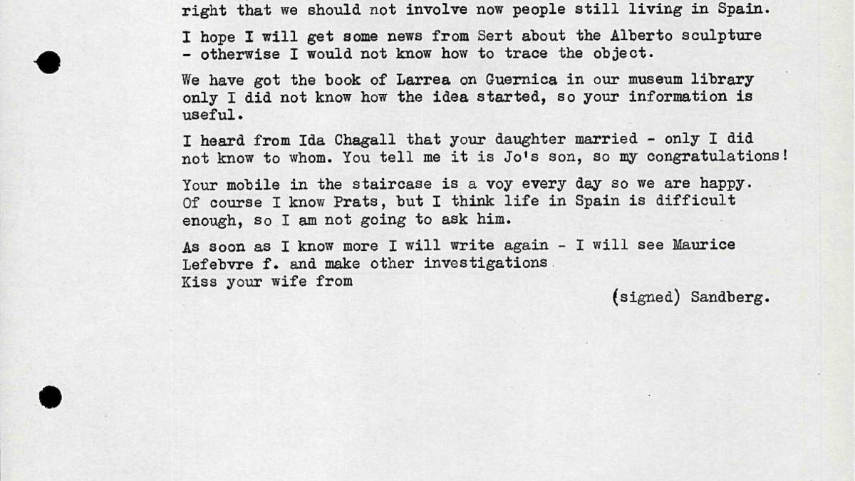 Willem Sandberg's letter to Alexander Calder, dated 30 November 1955